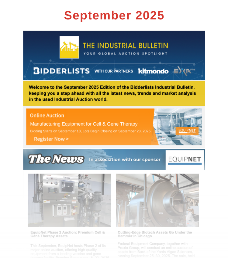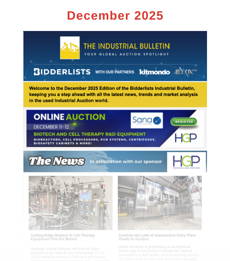 Amongst the largest auctioneers in the world regularly market their upcoming auctions in the Industrial Bulletin. Why not follow their lead and get in contact today for more information on how we can help you next sale become a resounding success.